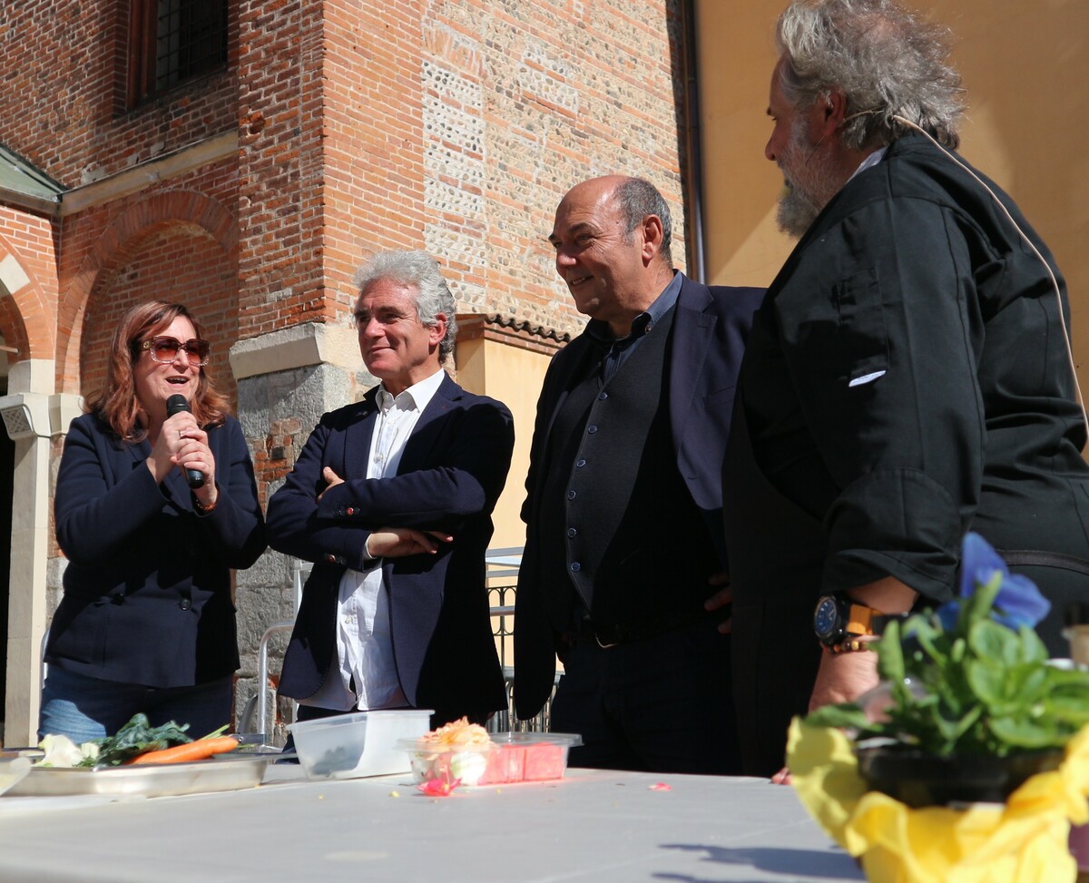 Un dialogo appassionato che ha mostrato come i fiori possano diventare protagonisti della cucina contemporanea. Lo chef Claudio Di Dio e il nutrizionista Marco Missaglia hanno proposto uno show cooking tra gusto e benessere, mentre il pasticcere Nicolò Moschella ha conquistato tutti con un dolce dedicato alla festa di San Pietro all’Olmo.