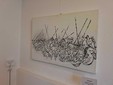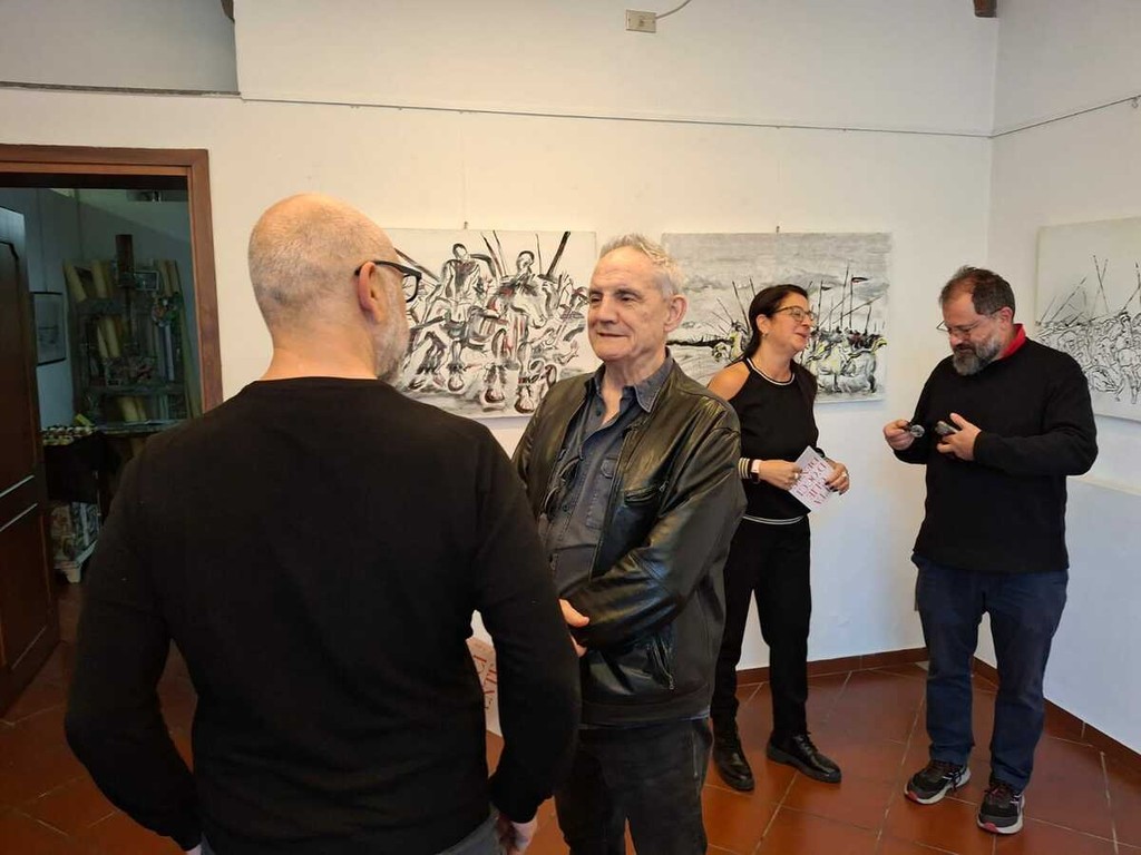 «Chi fu il primo che inventò le spaventose armi? Da quel momento furono stragi, guerre (…) Siamo noi che usiamo malamente quello che egli ci diede per difenderci dalle feroci belve». Nella citazione di Tibullo rintracciabile nella presentazione di “Battaglie d’Occidente” si trova una parte del messaggio racchiuso nelle opere di Stefano Chiodaroli, attore, cabarettista, cultore della pittura. La personale inaugurata oggi allo Spazio Arte Carlo Farioli di Busto (foto in fondo) tradisce il fascino per il movimento, la dinamicità, le battaglie appunto. Evoluzione, su acrilico, di quelle che Chiodaroli racconta di avere disegnato fin da giovanissimo, quasi un antidoto alle imposizioni e alla disciplina, un'esplosione di energia vitale.