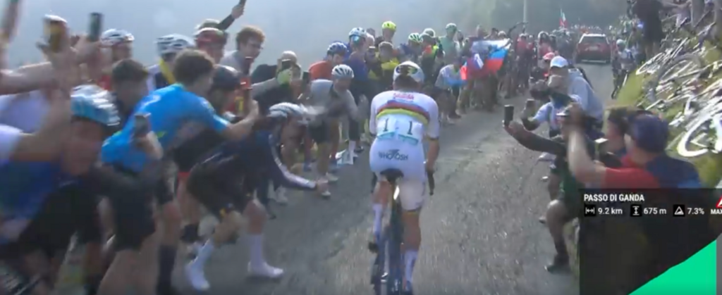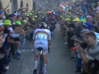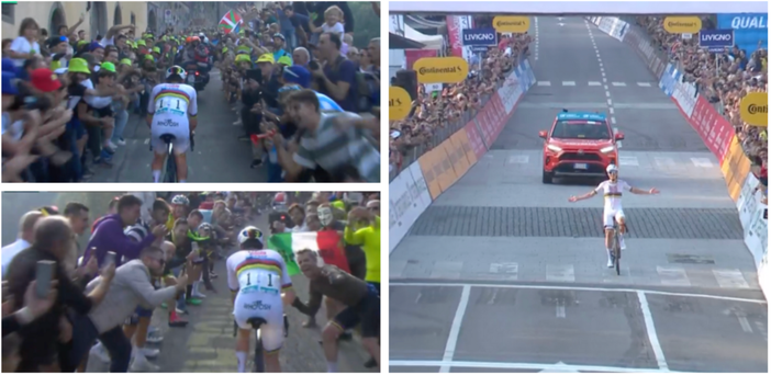Un uomo solo al comando, la sua maglia è iridata, il suo nome è Tadej Pogacar. Adesso sì che possiamo dirlo senza vergogna né pudore: Fausto Coppi non se ne avrà a male.
