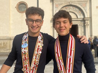 Filippo Toia e Ludovico Brazzelli non hanno ancora il mantello, ma indossano già i primi segni della Confraternita e sono subito intercettati da alcuni bustocchi incuriositi dall'insolito spettacolo domenicale: «Ma che succede, cosa sono tutte queste persone che sfilano? E voi chi rappresentate?». Già sul pezzo, i due giovani spiegano subito che appartengono al Magistero dei Bruscitti di Busto Arsizio e tutti i personaggi che stanno attraversando il centro della città appartengono alle confraternite di tutt'Italia, radunate ufficialmente qui.