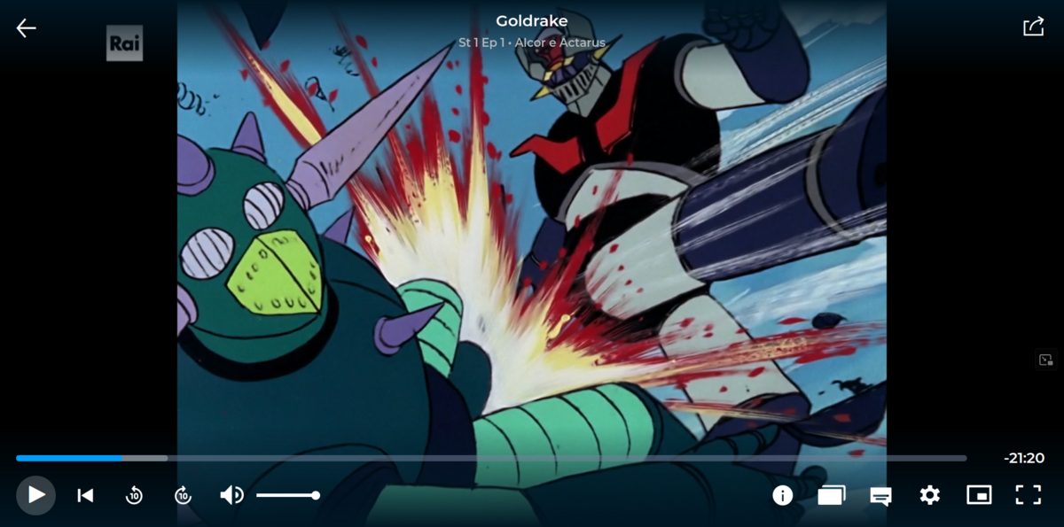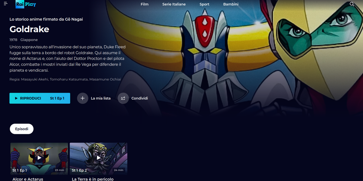 La pagina di Raiplay dedicata a Goldrake