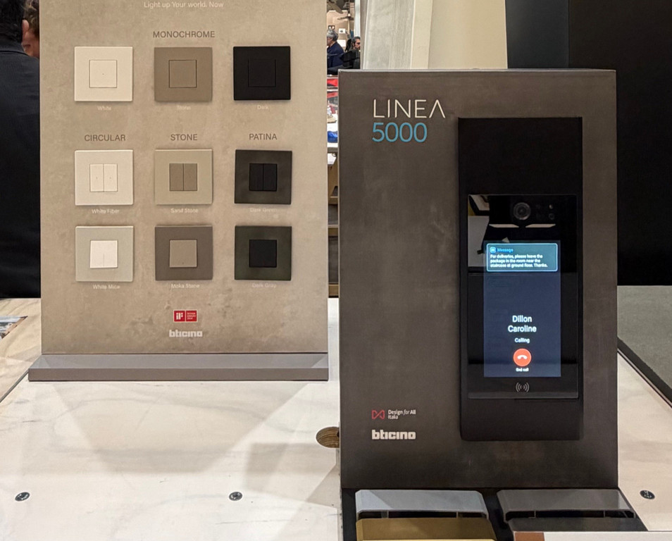 Caratterizzato da linee verticali e da una struttura essenziale, integra un ampio display, videocamera HD e sensori intelligenti in un design contemporaneo. L’interfaccia intuitiva, con assistenza vocale e testi scalabili, garantisce un utilizzo semplice e accessibile, mentre la navigazione simile a quella di uno smartphone consente una gestione evoluta con messaggi personalizzabili, accesso remoto e modifica autonoma dei nomi. Realizzato con materiali riciclati e un numero ridotto di accessori, presenta una cornice in alluminio e cinque finiture metalliche che ne facilitano l’integrazione, in qualsiasi contesto architettonico.