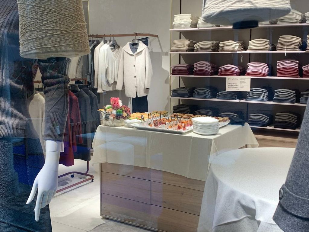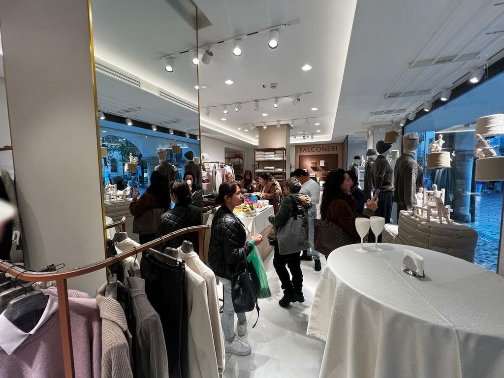 A passanti ed habitué delle “vasche” in corso Matteotti non sarà sfuggito il piccolo salotto esterno che ha fatto d’appendice alle vetrine di Falconeri, di fianco all’Arco Mera, trasformando per una sera l’atelier varesino in un ritrovo dove la raffinatezza dell’abbigliamento si è sposata con quella dell’arredamento e del gusto.