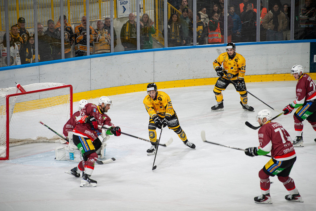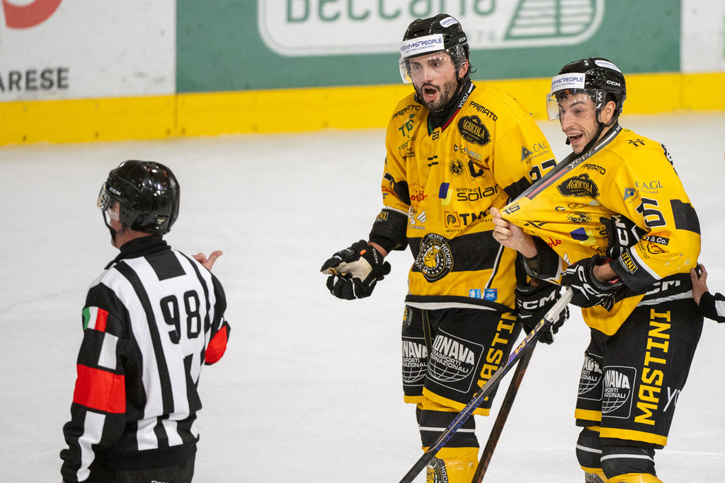 Al decimo minuto di penalità beccato dai Mastini nei primi 22 minuti, gli ospiti passano in power play con una grande azione in velocità: Longhini smarca Sysak con un passaggio centrale che taglia la difesa giallonera ispirando il tiro imparabile dello 0-1. Nel momento forse di maggior sofferenza dei suoi, Perino fa scoppiare l'incendio grazie a una clamorosa scazzottata con Geronazzo. Il Varese aveva bisogno di una scossa, concretizzata dal killer Tilaro che, sentito odore di sangue, colpisce per l'1-1 servito da Marcello Borghi. Da lì ci sono occasioni di qua (Xamin e Schina, poi Bastille solo davanti al portiere, ma questi facili sono i gol che per ora non gli entrano), e di là, con Pisarenko Mvp. Una parata quasi sulla sirena su De Giacinto dell'ucraino si fa quasi fatica a vederla, talmente è selvaggio e veloce il tiro, ma ancor più l'opposizione.