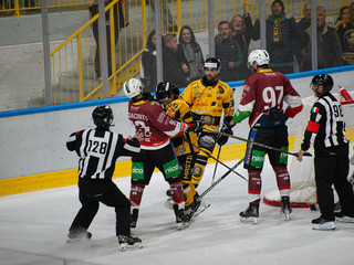 Al decimo minuto di penalità beccato dai Mastini nei primi 22 minuti, gli ospiti passano in power play con una grande azione in velocità: Longhini smarca Sysak con un passaggio centrale che taglia la difesa giallonera ispirando il tiro imparabile dello 0-1. Nel momento forse di maggior sofferenza dei suoi, Perino fa scoppiare l'incendio grazie a una clamorosa scazzottata con Geronazzo. Il Varese aveva bisogno di una scossa, concretizzata dal killer Tilaro che, sentito odore di sangue, colpisce per l'1-1 servito da Marcello Borghi. Da lì ci sono occasioni di qua (Xamin e Schina, poi Bastille solo davanti al portiere, ma questi facili sono i gol che per ora non gli entrano), e di là, con Pisarenko Mvp. Una parata quasi sulla sirena su De Giacinto dell'ucraino si fa quasi fatica a vederla, talmente è selvaggio e veloce il tiro, ma ancor più l'opposizione.