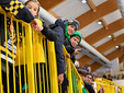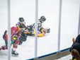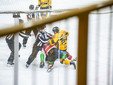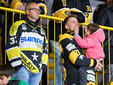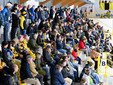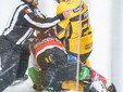 Una serata da brividi all'Acinque Ice Arena: le foto del popolo giallonero qui a sinistra e in gallery targate Alessandro Umberto Galbiati e quelle della scazzottata Perino-Geronazzo, a destra, di Alberto Bernasconi
