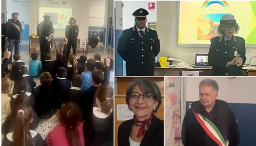 I bambini della scuola Pascoli dell'istituto comprensivo Moro a Solbiate Olona sembrano già piuttosto preparati sulle regole da rispettare in strada. Ma ora lo sono anche di più, grazie all'iniziativa della Polizia locale e del Comune e con l'aiuto di Squitty, la tartaruga protagonista del libro del comandante Paolo Finamore (LEGGI QUI). Proprio quest'ultimo con la vicecomandante Barbara Colombo e il sindaco Lucio Ghioldi questa mattina ha cominciato questo innovativo round di educazione stradale in aula. Presente la dirigente scolastica Maria Concetta Tripoli.