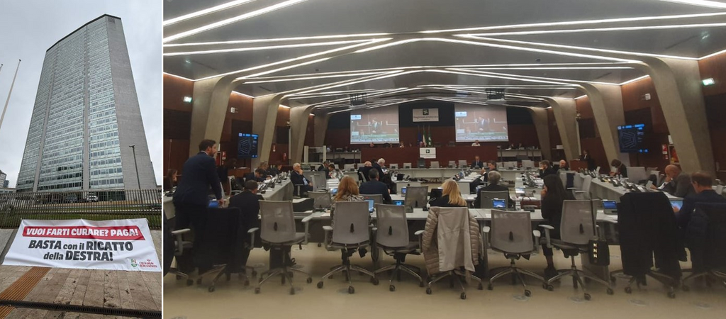 Da tempo i dem denunciano la crescita delle liste d’attesa e la mancanza di un Cup unico. «Vuoi farti curare? Paga! Basta con il ricatto della destra», si legge sullo striscione portato dai consiglieri al presidio davanti a Palazzo Pirelli.