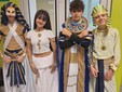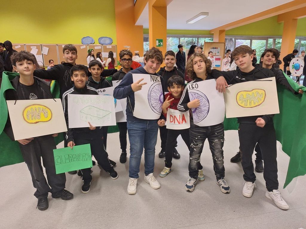 A ogni classe è stato assegnato un tema, sorteggiato tra gli argomenti affrontati nel triennio — dall’antico Egitto all’Unità d’Italia, passando per le scienze naturali e la biologia — e da lì è nata una piccola rappresentazione teatrale. Gli studenti si sono occupati di tutto: costumi, scenografie, testi e persino musiche, privilegiando l’uso di materiali di recupero in un’ottica sostenibile.