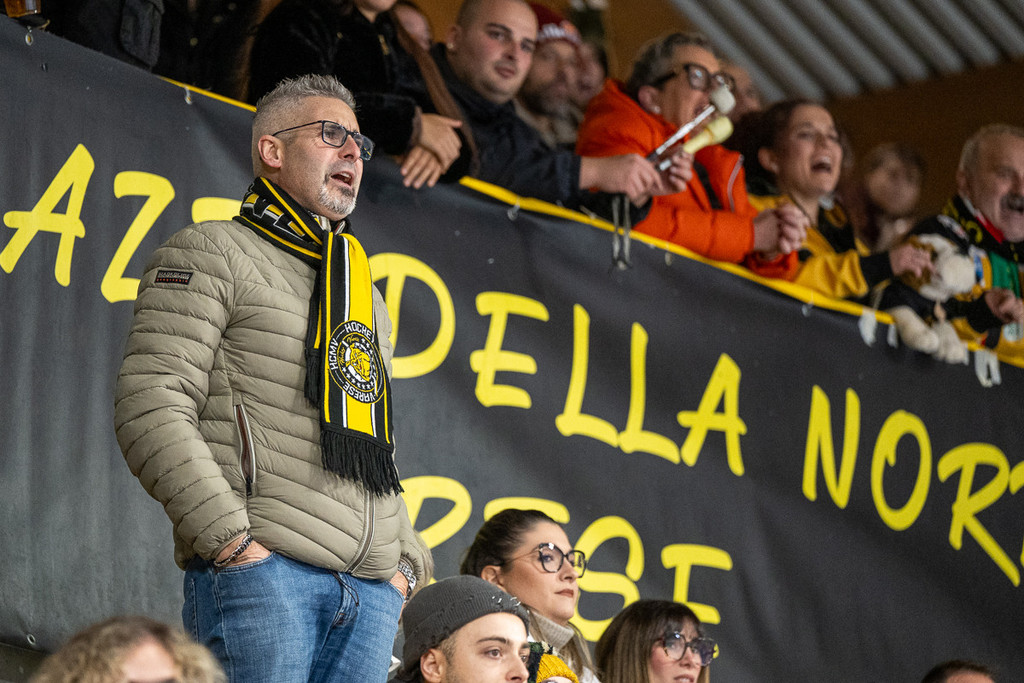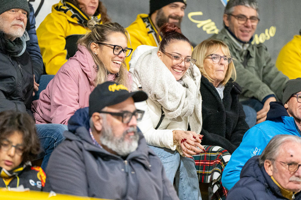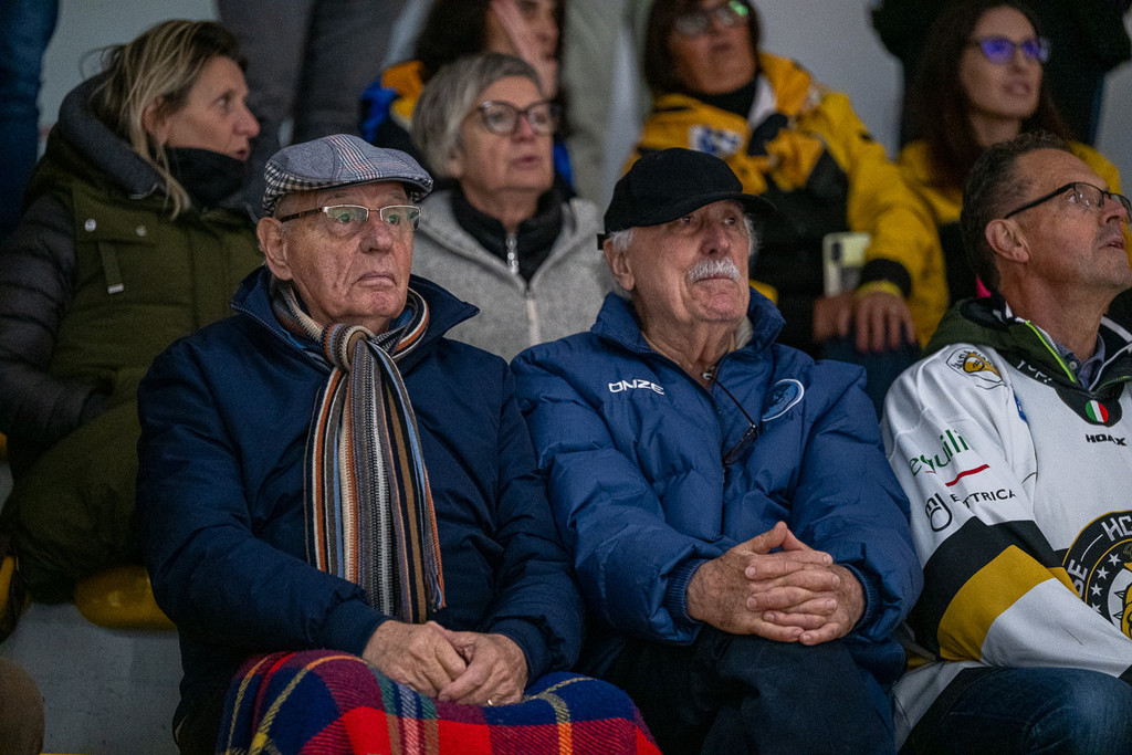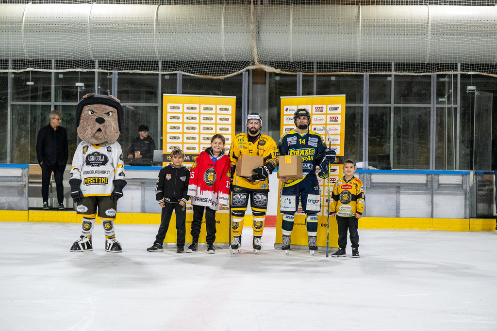La curva bassa piena, quella alta che canta dall'inizio alla fine e un colpo d'occhio che in un giovedì feriale prima di un ponte è stato comunque una delle vittorie nella vittoria dei Mastini sull'Appiano (4-1: leggi QUI). Al di là delle pesanti assenze ospiti (i due stranieri Roach e Williamson oltre a Radin), oltreché di quelle giallonere (Tilaro, che tornerà tra qualche settimana dopo aver risolto il guaio muscolare, Re, Pietro Borghi e capitan Vanetti, che ha tolto il tutore al braccio e sta iniziando la lunga fase di riabilitazione alla spalla operata), contava altro - pressare, caricare, pattinare, soffrire e lottare con umiltà e fame - e questo "altro" è arrivato in pieno.