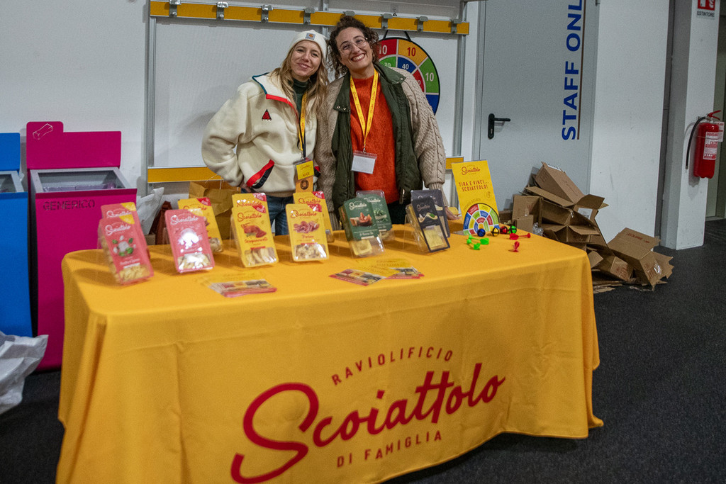Al centro Delia Antognazza, medico dei Mastini, con la piccola Olimpia; a sinistra Pippo Matonti con Alex Bertin, due muri gialloneri; qui sopra il banchetto dello Scoiattolo che ha regalato ravioli al pubblico; a destra alcuni volti della passione giallonera (foto Alessandro Umberto Galbiati)