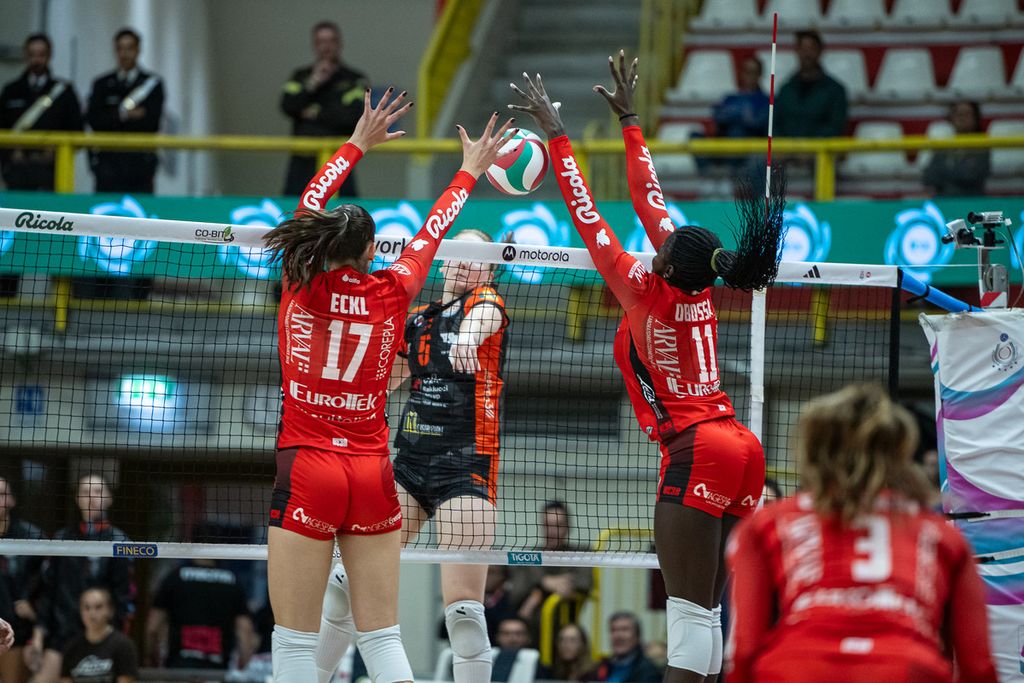 Nel terzo parziale si gioca sul filo dell’equilibrio, con entrambe le squadre efficaci nel cambio palla. Macerata, più concreta, conserva un piccolo break di vantaggio sin dai primi scambi. Dopo l’attacco vincente di Decortes e la murata subita da Battista, le ospiti volano sull’11-14. La Uyba prova a reagire con il muro di Eckl che accorcia le distanze (13-14), ma il fondamentale non gira come dovrebbe per le biancorosse. Le farfalle trovano comunque l’aggancio sul 14 pari e sorpassano nel punto forse più spettacolare del set: un lungo rally, vinto con caparbietà, difese precise e ricostruzioni intelligenti, che vale il 16-15. Busto sembra poter girare l’inerzia, ma Macerata conferma tutta la sua solidità: squadra compatta, automatismi rodati e un muro che continua a fare la differenza. Un block su Obossa - meno servita da Seki in questa fase, chissà perché - riporta avanti le marchigiane. Sul 18-20 coach Barbolini inserisce Parra per Gennari alla ricerca di più incisività in attacco, ma il problema resta a muro, dove la Uyba fatica a imporsi. Macerata ne approfitta e chiude il set con l’ennesimo attacco vincente di Decortes (8 nel game): 22-25 e 2-1 per le ospiti.