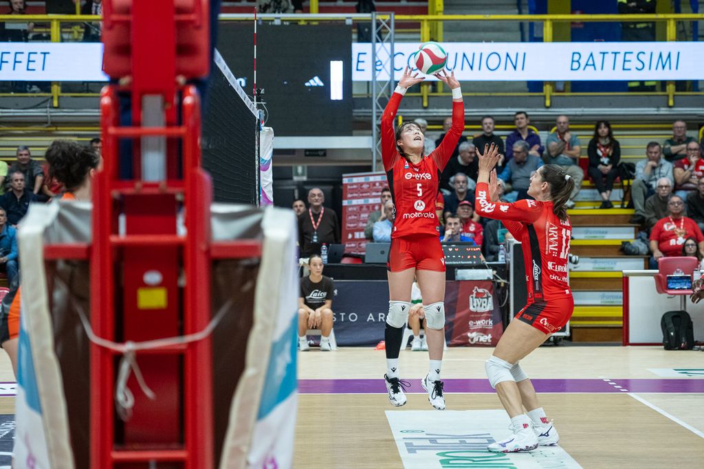 Eckl si riscatta con primo tempo e ace per il 18-20, poi il servizio di Obossa costringe Macerata all’errore, fino all’aggancio sul 21 pari. Ma due imprecisioni della stessa opposta permettono alle ospiti di riallungare (21-23). Nuova parità a 23, con Pelloni super in difesa e Battista efficace col mani-out (24 pari). L’errore in primo tempo di Eckl però chiude il set sul 24-26: Macerata avanti 1-0. Per la Uyba un avvio complicato, con troppi passaggi a vuoto in ricezione e poca lucidità nel momento decisivo.