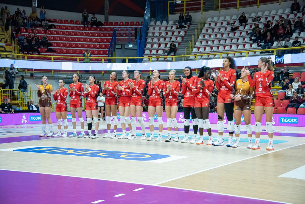 La Uyba scende in campo con il sestetto tipo: Seki in regia opposta a Obossa, Van Avermaet ed Eckl al centro, Parra e Gennari in banda, Pelloni libero. Dall’altra parte della rete, la matricola CBF Balducci HR Macerata si affida alle sue punte Decortes e Kokkonen, protagoniste di un inizio di stagione sorprendente e già a quota otto punti in classifica.