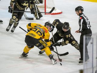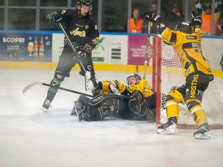 Primi minuti intensi, belli, pieni. Pieni soprattutto di Mastini, con Pippo Matonti insuperabile - senza nemmeno ricorrere a miracoli - su Fraschetta e poi Nardella, il pericolo pubblico da 103 punti della scorsa stagione, che scocca il primo tiro solo al 18' in power play ben parato. Mastini assassini sul gol dell'1-0, realizzato in inferiorità numerica in contropiede con la linea delle meraviglie: Terzago, che ha gli occhi anche sulle spalle, vede il gemello Bastille piombare davanti a Perla, lo serve ed è un gioco da ragazzi. Sono i gialloneri a creare le occasioni del raddoppio con Bertin, solo ma murato da Perla, e poi con Pizzo. Per cominciare, non c'è male. Quello che verrà dopo, sarà anche meglio.