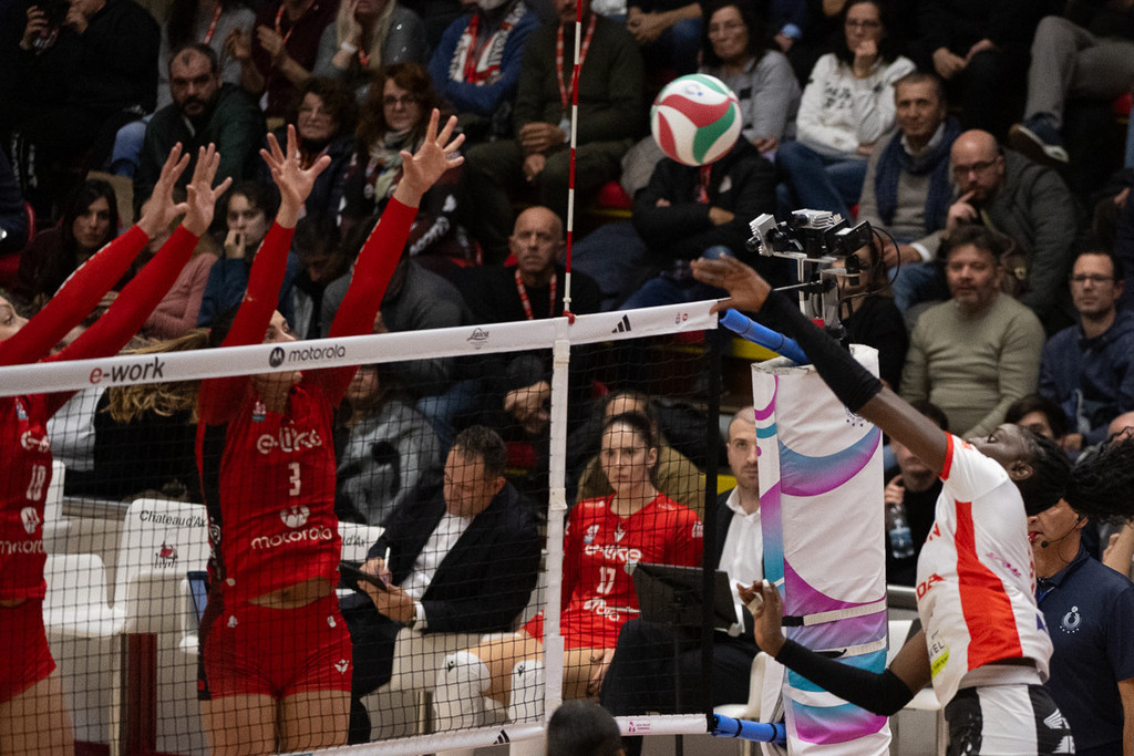 L’e-work arena, va detto, non era gremita: il calendario fitto, l’orario serale del mercoledì e perfino l’“effetto Sinner” in tv (con il nostro numero uno del tennis in campo alle ATP Finals di Torino) hanno lasciato qualche vuoto sugli spalti. Ma chi c’era, compresi i tifosi più multitasking con un occhio al telefonino per seguire il tennis e l’altro sul taraflex per tifare Uyba, ha avuto di che divertirsi.