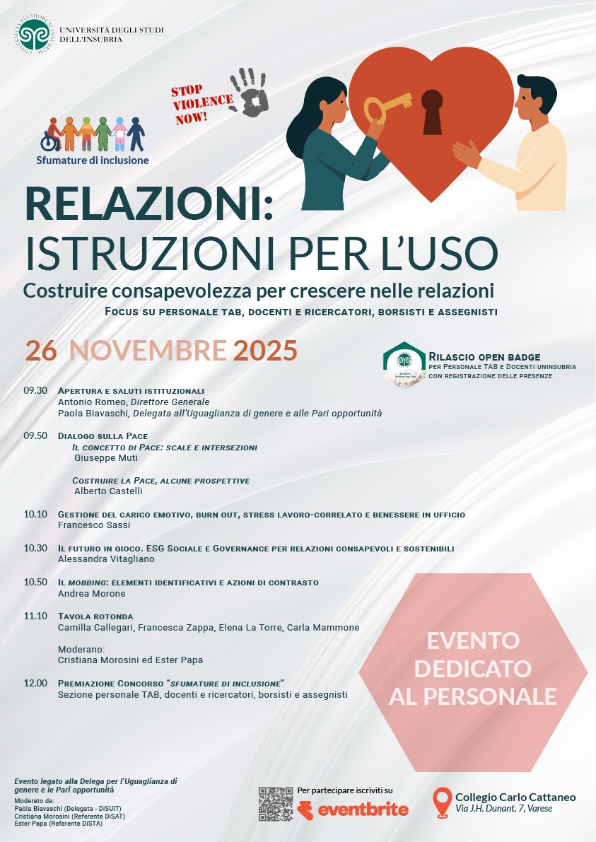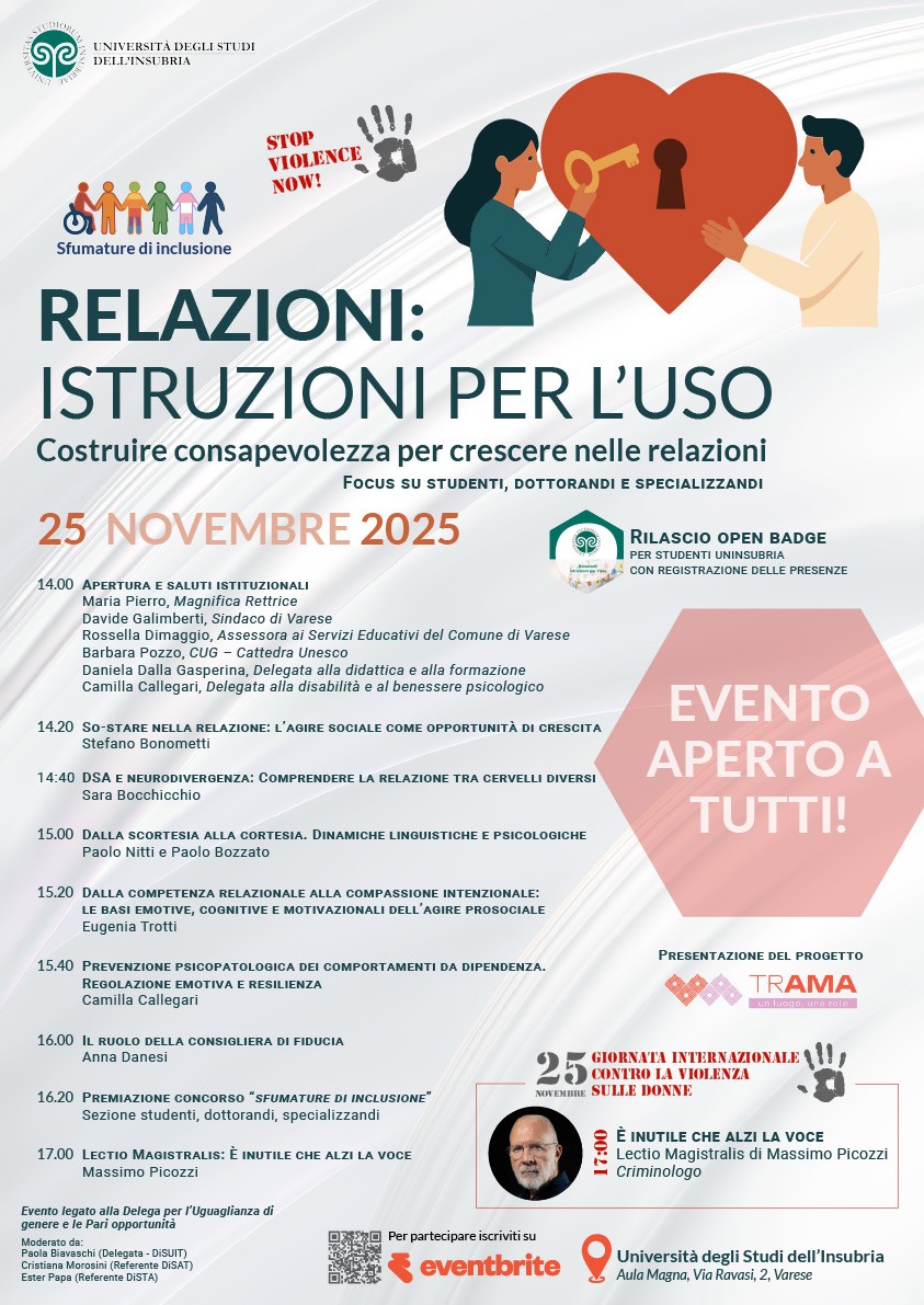 Per approfondimenti e prenotazioni: www.uninsubria.it/relazioni-sfumature