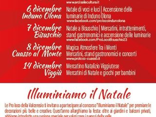 A rafforzare ancor di più il concetto e la proposta, il concorso Illuminiamo il Natale che premierà commercianti e privati che presenteranno il miglior “allestimento” natalizio. Questo concorso, nato da una collaborazione tra le Pro Loco di Arcisate e Bisuschio, quest’anno si allargherà a tutta la valle.