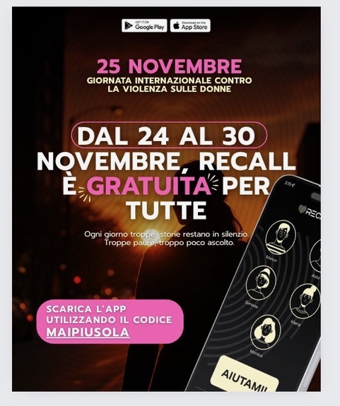 In occasione della Giornata internazionale per l’eliminazione della violenza contro le donne, Recall, la app concepita come strumento immediato di protezione personale, annuncia una promozione straordinaria dedicata a tutte le donne a partire dai 14 anni di età.