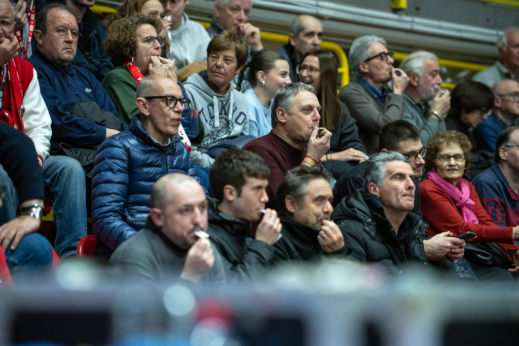 Pochi minuti prima dell’inizio della gara, con il supporto dello speaker dell’arena, il pubblico è stato invitato a unirsi a un momento di forte impatto emotivo: un minuto senza musica, durante il quale tutto il pubblico e gli staff delle due squadre sono stati invitati a fischiare insieme, in un gesto simbolico di denuncia.