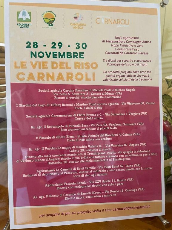 Nell’ultima foto qui sotto la lista dei nove agriturismi che aderiscono all’iniziativa Le Vie del Carnaroli.