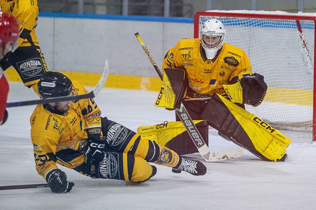 Un muro di gente e un palaghiaccio sold out non meritavano questo "spettacolo": quattro gol regalati dopo alcuni dischi persi e ingenuità inconcepibili, lasciando arrivare l'uomo solo davanti alla porta, gol falliti in maniera inenarrabile a volte per troppi svolazzi, ma c'è di più. Prendiamo l'Alleghe: ha la bravura e spesso la fortuna (i dischi persi, quattro, di cui dicevamo) di arrivare sette-otto volte davanti a Pisarenko e segna cinque volte, noi il doppio e non lo facciamo mai. Bene le assenze e la coperta corta della rosa, bene la stanchezza di essere un po' ridotti all'osso, bene tutto ma se Diego Iori da Cavalese a 39 anni ci segna due gol, dà un assist e ci porta a spasso, noi abbiamo almeno tutto il diritto di chiedere ai due stranieri del Varese di fare gli stranieri e di fare pure la differenza come l'hanno fatta quelli del Valpellice, del Fiemme e dell'Alleghe negli ultimi tre ko gialloneri: William Makinen non può fallire a porta spalancata il gol dell'1-1. Quei gol uno straniero del Varese, difensore, attaccante o perfino se fosse attrezzista arrivato dalla Luna, li deve fare. E invece non li fa, ultimamente, mai.
