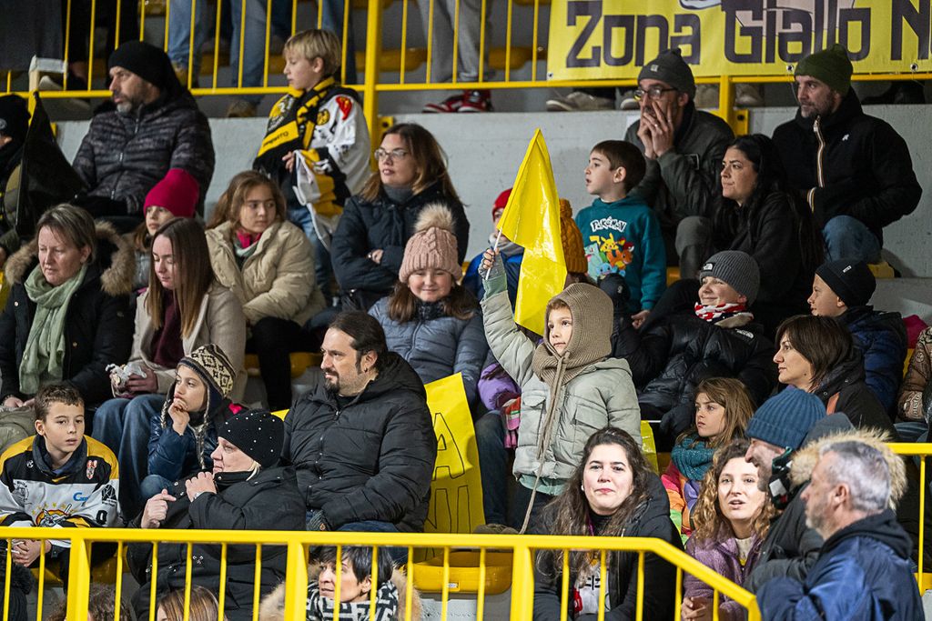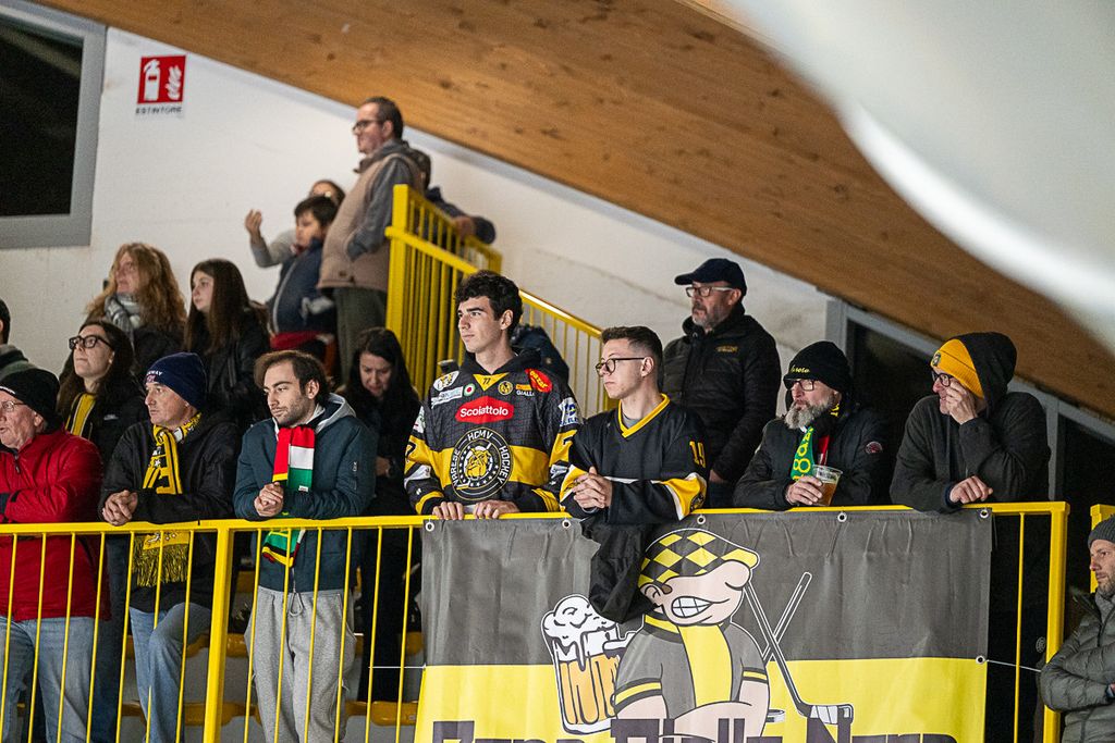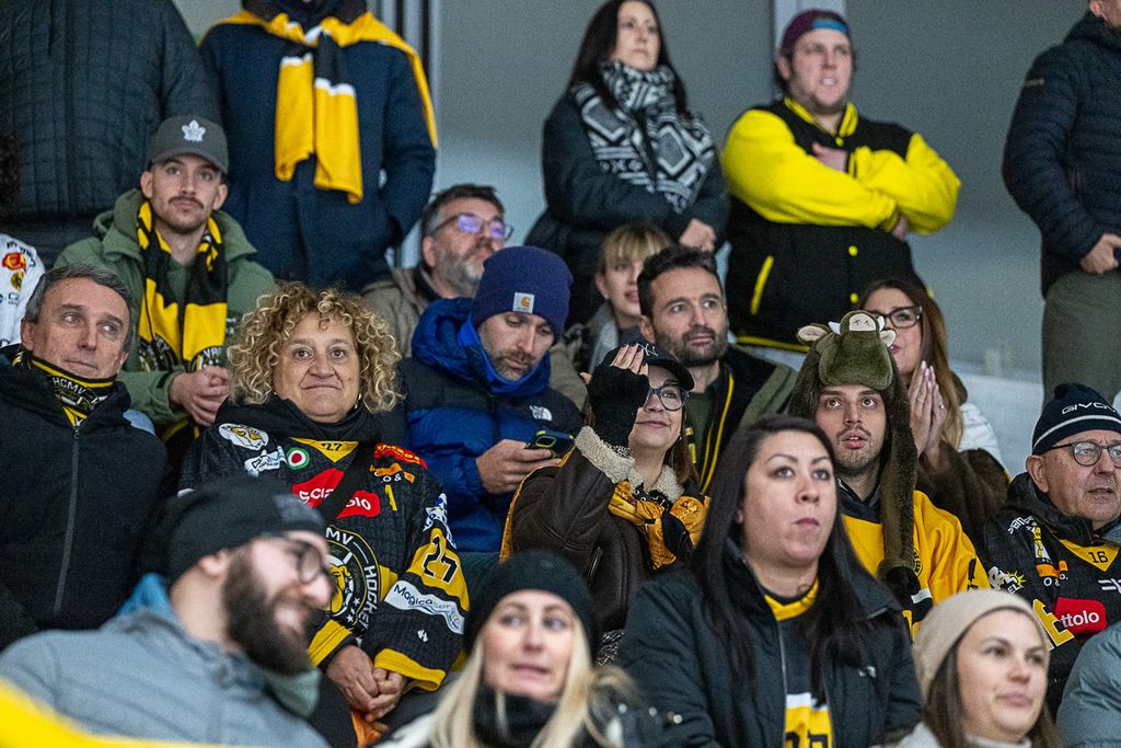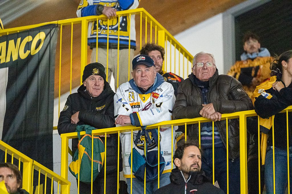 Oggi non abbiamo nulla da dire: lo abbiamo già fatto abbastanza ieri (leggi QUI). Proponiamo solo le immagini scattate da Alessandro Umberto Galbiati dei 1.098 spettatori che hanno regalato il sold out all'Acinque Ice Arena. Mai avuto nulla da dire, e mai lo avremo, sull'impegno e sul sacrificio dei giocatori gialloneri, da sostenere sempre e comunque visto quello che fanno sul ghiaccio e, molti di loro, anche nella vita: ma sulle ingenuità a ripetizione in difesa che sono costate almeno quattro delle cinque reti segnate dall'Alleghe, sulla miriade di gol sbagliati davanti al portiere avversario - chissà perché, nelle ultime gare è quasi sempre il migliore in pista anche se prima di affrontare i Mastini non lo è affatto: evidentemente siamo noi a farlo grande ogni volta, con i nostri errori - vorremmo che, soprattutto i professionisti e il gruppo che è un insieme senza volto e senza nomi se è davvero degno di tal nome si rivedessero le immagini della partita su Fisgtv, anche se capiamo che sia una tortura, come lo è stata per noi e per il pubblico di via Albani.