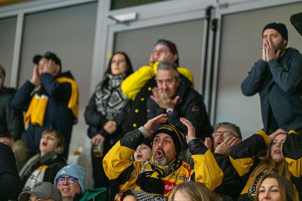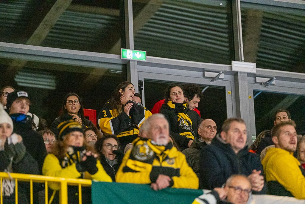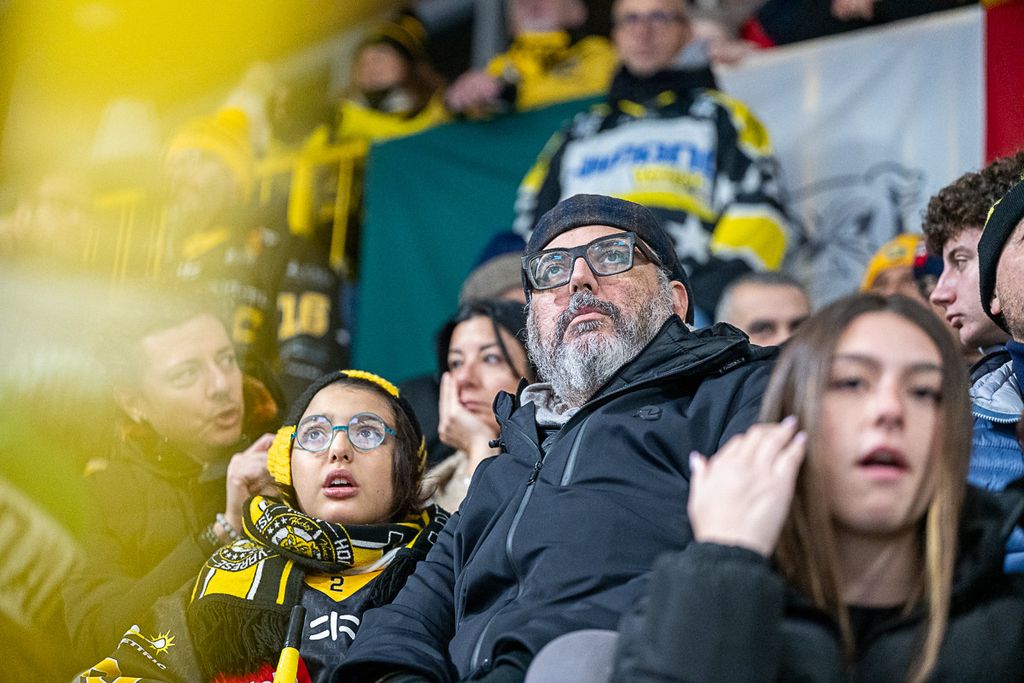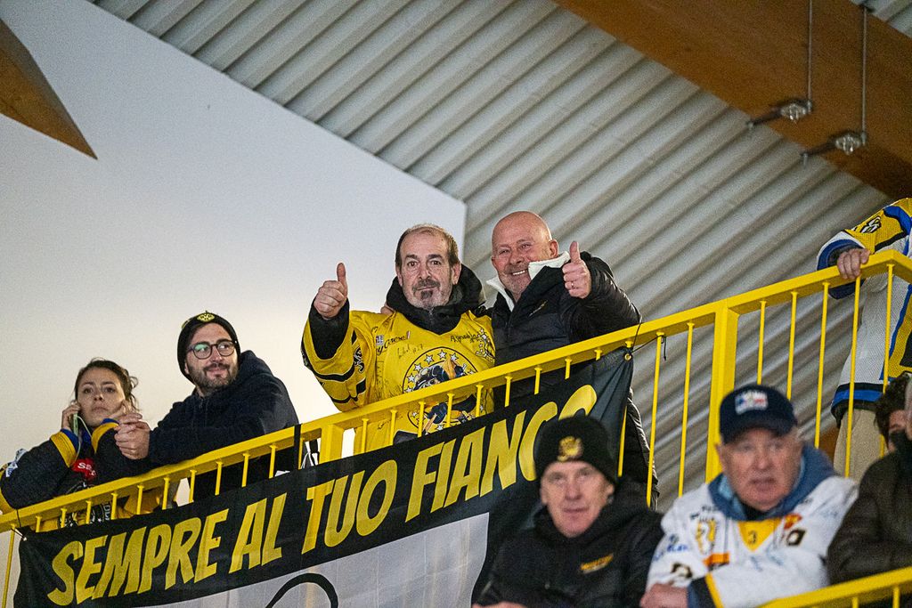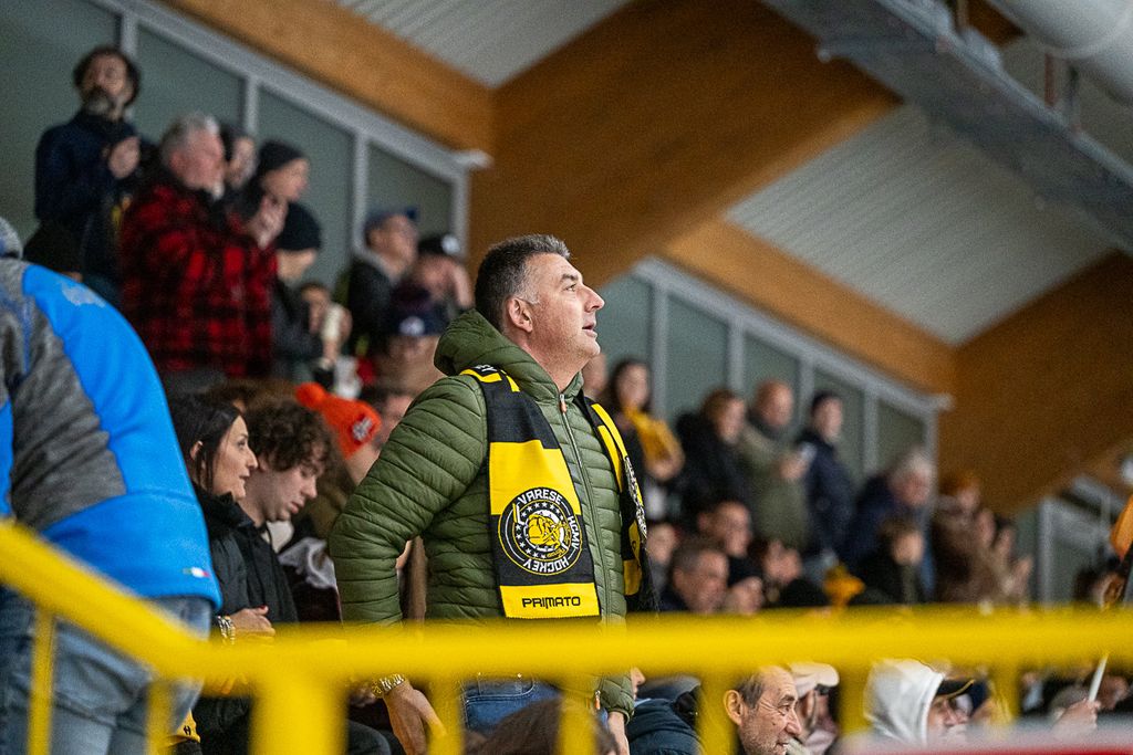 Oggi non abbiamo nulla da dire: lo abbiamo già fatto abbastanza ieri (leggi QUI). Proponiamo solo le immagini scattate da Alessandro Umberto Galbiati dei 1.098 spettatori che hanno regalato il sold out all'Acinque Ice Arena. Mai avuto nulla da dire, e mai lo avremo, sull'impegno e sul sacrificio dei giocatori gialloneri, da sostenere sempre e comunque visto quello che fanno sul ghiaccio e, molti di loro, anche nella vita: ma sulle ingenuità a ripetizione in difesa che sono costate almeno quattro delle cinque reti segnate dall'Alleghe, sulla miriade di gol sbagliati davanti al portiere avversario - chissà perché, nelle ultime gare è quasi sempre il migliore in pista anche se prima di affrontare i Mastini non lo è affatto: evidentemente siamo noi a farlo grande ogni volta, con i nostri errori - vorremmo che, soprattutto i professionisti e il gruppo che è un insieme senza volto e senza nomi se è davvero degno di tal nome si rivedessero le immagini della partita su Fisgtv, anche se capiamo che sia una tortura, come lo è stata per noi e per il pubblico di via Albani.