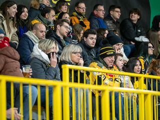 Oggi non abbiamo nulla da dire: lo abbiamo già fatto abbastanza ieri (leggi QUI). Proponiamo solo le immagini scattate da Alessandro Umberto Galbiati dei 1.098 spettatori che hanno regalato il sold out all'Acinque Ice Arena. Mai avuto nulla da dire, e mai lo avremo, sull'impegno e sul sacrificio dei giocatori gialloneri, da sostenere sempre e comunque visto quello che fanno sul ghiaccio e, molti di loro, anche nella vita: ma sulle ingenuità a ripetizione in difesa che sono costate almeno quattro delle cinque reti segnate dall'Alleghe, sulla miriade di gol sbagliati davanti al portiere avversario - chissà perché, nelle ultime gare è quasi sempre il migliore in pista anche se prima di affrontare i Mastini non lo è affatto: evidentemente siamo noi a farlo grande ogni volta, con i nostri errori - vorremmo che, soprattutto i professionisti e il gruppo che è un insieme senza volto e senza nomi se è davvero degno di tal nome si rivedessero le immagini della partita su Fisgtv, anche se capiamo che sia una tortura, come lo è stata per noi e per il pubblico di via Albani.
