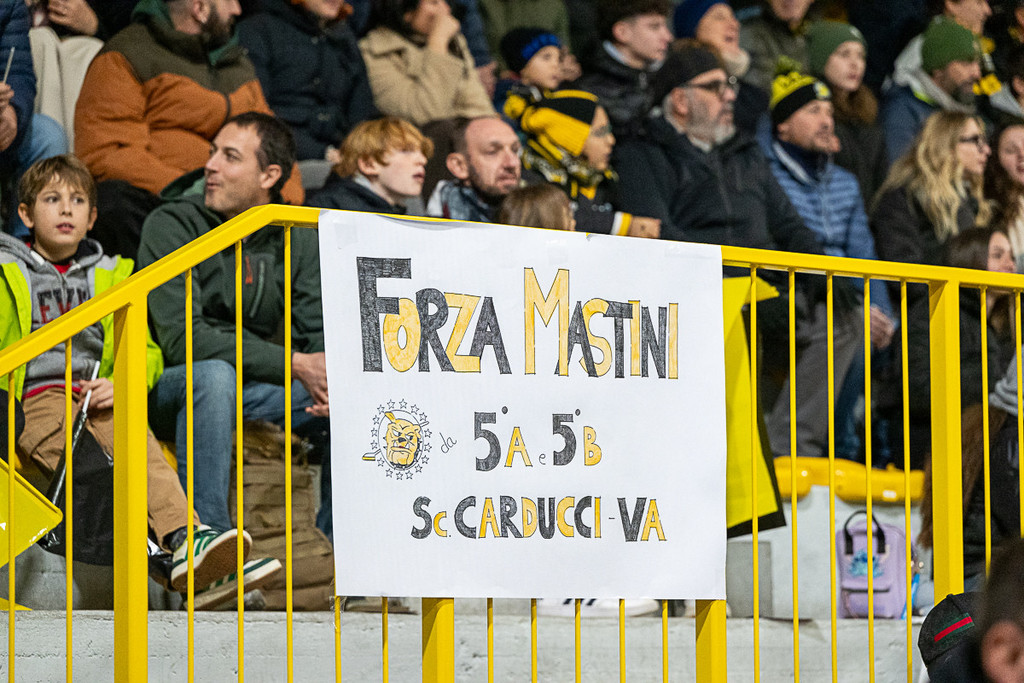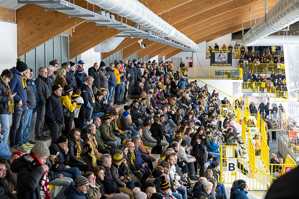 Oggi non abbiamo nulla da dire: lo abbiamo già fatto abbastanza ieri (leggi QUI). Proponiamo solo le immagini scattate da Alessandro Umberto Galbiati dei 1.098 spettatori che hanno regalato il sold out all'Acinque Ice Arena. Mai avuto nulla da dire, e mai lo avremo, sull'impegno e sul sacrificio dei giocatori gialloneri, da sostenere sempre e comunque visto quello che fanno sul ghiaccio e, molti di loro, anche nella vita: ma sulle ingenuità a ripetizione in difesa che sono costate almeno quattro delle cinque reti segnate dall'Alleghe, sulla miriade di gol sbagliati davanti al portiere avversario - chissà perché, nelle ultime gare è quasi sempre il migliore in pista anche se prima di affrontare i Mastini non lo è affatto: evidentemente siamo noi a farlo grande ogni volta, con i nostri errori - vorremmo che, soprattutto i professionisti e il gruppo che è un insieme senza volto e senza nomi se è davvero degno di tal nome si rivedessero le immagini della partita su Fisgtv, anche se capiamo che sia una tortura, come lo è stata per noi e per il pubblico di via Albani.