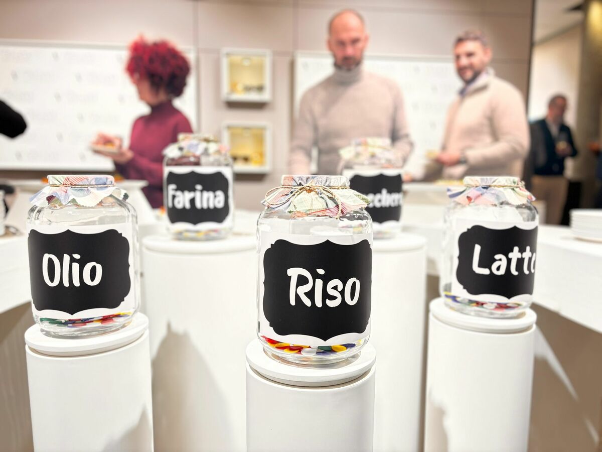 All’interno del centro ottico è stato allestito uno spazio speciale: cinque vasi di vetro rappresentano altrettanti alimenti essenziali – olio, farina, latte, riso e zucchero – nei quali inserire gettoni colorati simbolo della donazione. Ogni cliente riceve due gettoni in omaggio, da destinare liberamente ai vasi, con la possibilità di acquistarne altri al costo di due euro ciascuno. «È una modalità immediata e accessibile, un invito alla comunità a compiere un piccolo gesto capace di trasformarsi in un grande aiuto», prosegue la dott.ssa Velati, sottolineando come la partecipazione sia aperta anche a chi entra solo per donare, senza alcun acquisto.