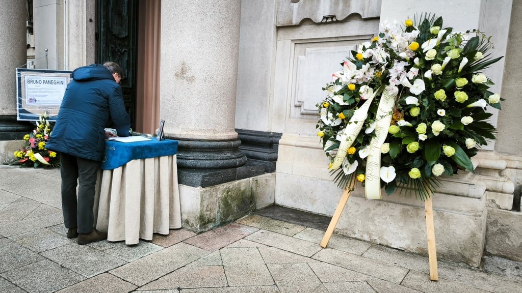 Sempre dal pulpito sono state lette le parole dello storico dell'arte e amico Carlo Bertoni, che ha ricordato come Paneghini sapesse «raccogliere sguardi», trasformando vecchie mura industriali in «un bellissimo laboratorio di futuro e di bellezza».