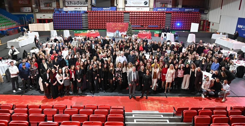 In 300 hanno brindato sul campo centrale della Soevis Arena di Castellanza, trasformata per una sera nello scenario di gala per la tradizionale festa degli auguri di ACOF Olga Fiorini. La serata di mercoledì 3 dicembre ha rinnovato una tradizione che non si ferma, chiamando a raccolta dirigenti, docenti, personale Ata e collaboratori della variegata struttura scolastica con quartier generale a Busto Arsizio.