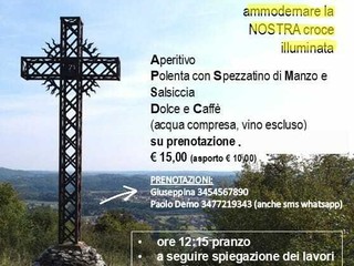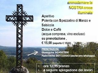 Dopo il pranzo, che si terrà attorno alle 12.15, si terrà un momento in cui verranno esposti i lavori in programma per la croce. A chiudere la giornata ci sarà un piccolo momento di intrattenimento.