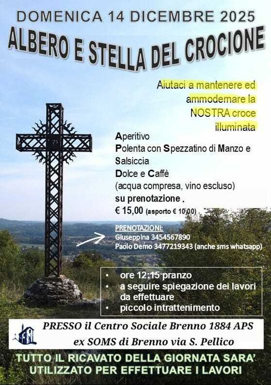 Mantenere e ammodernare il centenario Crocione che fa capolino sulla cima del Monte Useria. È questo lo scopo con cui viene organizzato l’evento che domenica 14 dicembre si terrà presso gli spazi del Centro Sociale Brenno, la ex Società Operaia di Brenno Useria, in via Silvio Pellico.