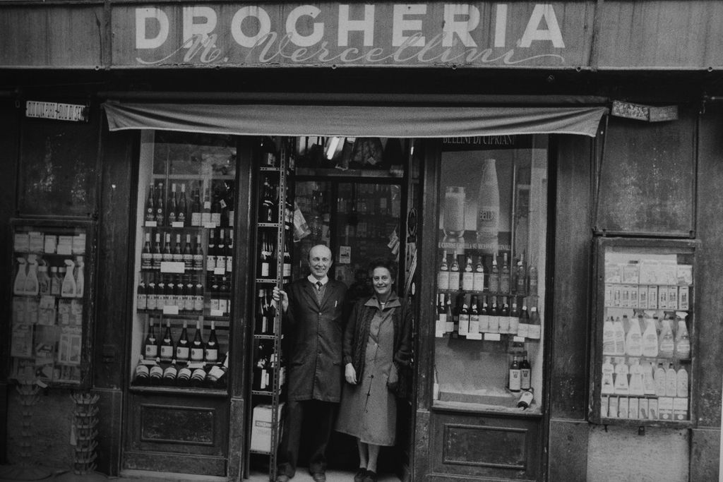 Il mondo di ieri, invece, ci è restituito attraverso i volti e i gesti dei pescatori del lago di Varese, oggi rimasti soltanto in tre, ma allora assai più numerosi, uomini che hanno trascorso la vita tra reti e pleniluni, gelate e nebbie da tagliare con il coltello, prima che l’inquinamento ne mutasse il destino. Meazza fa poi passeggiare l’osservatore in una Varese scomparsa, quella dei “bei negozi” del centro, con le loro boiserie e la convivialità del bar Garibaldi e del Ghezzi, per fortuna ancora lì dal 1919, la passione di Mario e Anita Vercellini sulla porta del negozio di via Croce. Era il mondo dei nostri genitori, che ci tenevano per mano davanti alle vetrine illuminate del Corso, del libro che si faceva arrivare o dell’etto di prosciutto San Daniele da portare a casa per la cena.