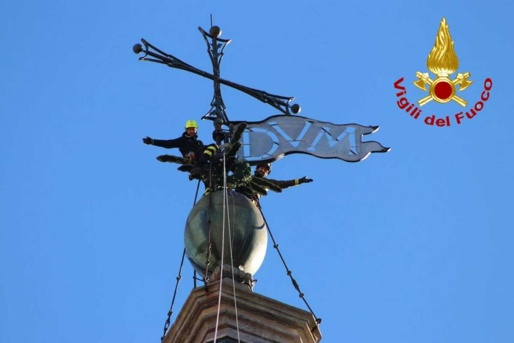 Il personale del Comando, con il supporto del personale dell’Associazione Nazionale dei Vigili del Fuoco, ha garantito lo svolgimento in sicurezza dell’attività, che ha previsto l’impiego di un automezzo con piattaforma aerea, e di un mezzo dedicato al settore Saf con il quale è stata allestita la manovra.