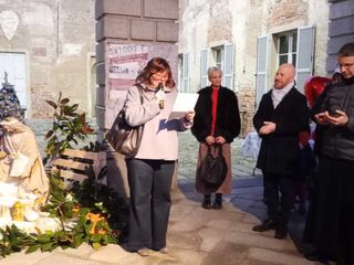 Il parroco don Simone Chiarion ha quindi benedetto la Natività, non prima di aver rivolto alcune parole agli astanti. «Certo il presepio è un segno di fede, di fede cristiana - ha detto - che annuncia Dio che si è fatto uomo ed è venuto ad abitare in mezzo a noi. Però credo che il segno povero e semplice del presepio sia capace di essere forte, di andare incontro anche a chi magari non condivide il percorso della fede e della fede cristiana. Ma realizzare il presepio negli ambienti della nostra vita quotidiana significa dimostrare gli uni agli altri che l’accoglienza non è impossibile, che se ci si organizza, si cammina insieme, ci si guarda in faccia, un po’ di spazio si riesce a fare, a trovare, per i tanti uomini e donne di questo tempo che cercano, in un modo o nell’altro, uno spazio in questo mondo e in queste nostre comunità».