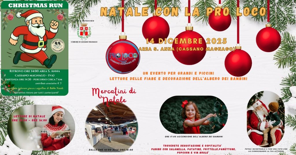 Domenica 14 dicembre la Pro Loco di Cassano Magnago celebrerà con un evento, Patrocinato dal Comune, le festività natalizie presso l’area feste di Sant’Anna.
