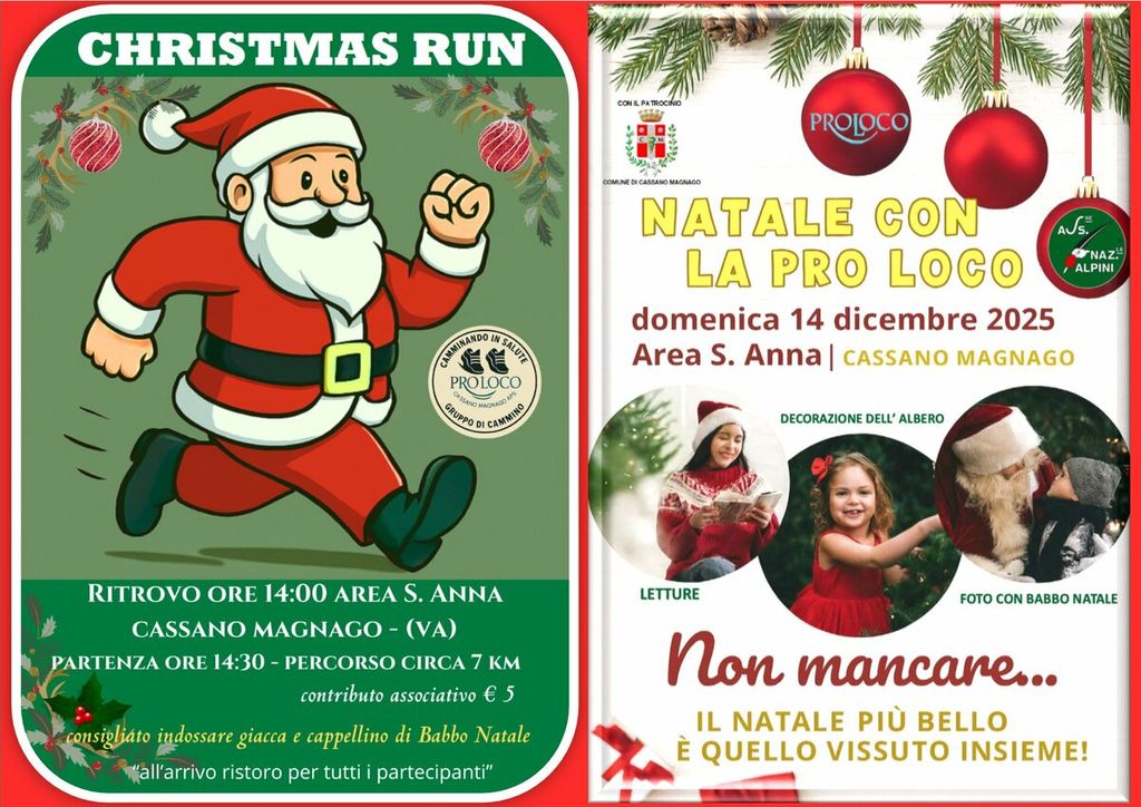 - Ore 14.00 ritrovo per la Christmas Run ( contributo 5 € ) di 7 km per la Città.