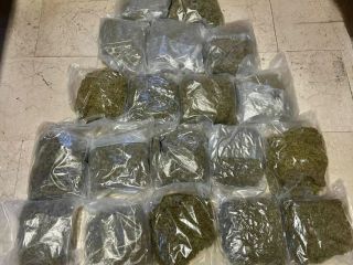 La perquisizione dell'auto ha consentito di rinvenire, nel bagagliaio, cinque chilogrammi di marijuana. I controlli sono stati approfonditi sia nell'abitazione della coppia, dove è stata rinvenuta un ulteriore mezzo chilo di marijuana, che presso un garage aperto con chiavi rinvenute nell'auto. Nel garage, locato a nome dell'intestatario dell'autovettura, è stato rinvenuto un ulteriore quantitativo di stupefacente per complessivi 13 chili di marijuana.