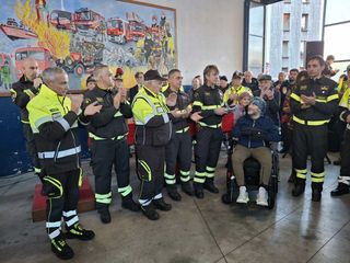 Festa doveva essere e festa è stata, al distaccamento dei Vigili del Fuoco di corso Sempione (foto in fondo). Il copione dell’evento giunto alla 38esima edizione (la presentazione QUI) non ha risparmiato grandi classici e colpi di scena: la distribuzione di caramelle e panettoni, il grande ritorno dell’elicottero che ha sorvolato l’area, l’accademia dei mini pompieri per i più piccoli, l’esposizione di mezzi storici e un intervento fino ai 25 metri del castello per recuperare Babbo Natale, circondato da fumo rosso. Ma l’appuntamento di oggi pomeriggio ha dispensato anche emozioni che vanno molto al di là dello scambio di auguri, del gioco, della solidarietà classica.