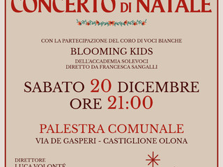 Dopo undici anni tornerà a Castiglione Olona anche il coro di voci bianche "Blooming Kids" dell’Accademia Solevoci, diretto da Francesca Sangalli, già protagonista del Concerto di Natale nel 2014. Accompagnati dalla Filarmonica, più di quaranta giovani coristi tra i 6 e i 18 anni interpreteranno i più celebri canti della tradizione natalizia.