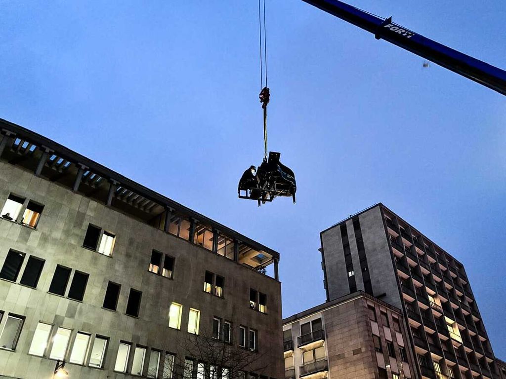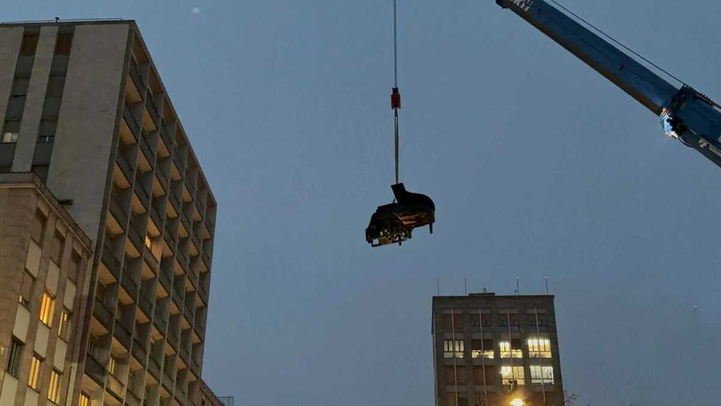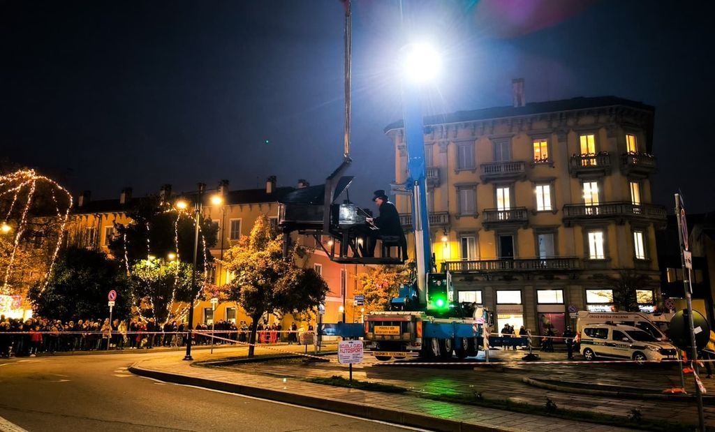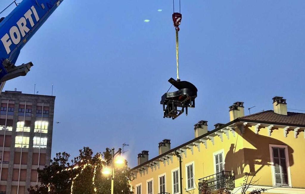 Poco dopo le 17, Paolo Zanarella – conosciuto al pubblico come il «pianista fuori posto» – ha preso posizione al suo strumento per essere poi sollevato da una gru fino a 15 metri d’altezza, muovendosi sorretto da una gru. L’iniziativa, realizzata in collaborazione con Hupac, ha trasformato lo spazio aereo sopra la piazza in un palcoscenico inedito.