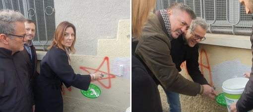 La prima pennellata, per coprire la sigla Br, l’ha data l’eurodeputata Isabella Tovaglieri. Poi, uno dopo l’altro, esponenti della Lega e di Fratelli d’Italia hanno coperto con della vernice bianca la scritta contro Giorgia Meloni apparsa nei giorni scorsi sul muro della sede della Lega di Busto Arsizio.