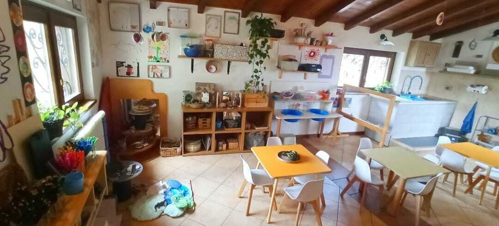 La Bottega delle Scoperte offre tre ambienti educativi pensati con cura: Il giardino, spazio di movimento e scoperta, progettato per l’apprendimento in natura: piante aromatiche, giardino sonoro, casetta del ristoro, sabbiera, cucina di fango, piccola arrampicata e proposte di outdoor education che favoriscono autonomia, cooperazione e curiosità. Il Salone del Fare, uno spazio laboratoriale dove i bambini possono dedicarsi ad attività di pittura, manipolazione, lettura, travasi e costruttività verticale: un luogo dove le mani pensano e il pensiero prende forma.
