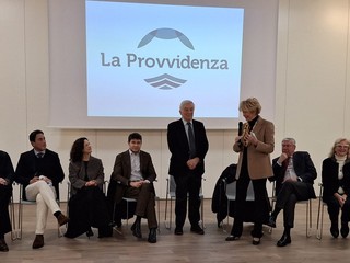 «Parlare dell’ingegner Gallazzi a chi conosce la Provvidenza – ha ripreso Chierichetti, davanti, fra gli altri, al suo predecessore, Romeo Mazzucchelli - è perfino banale. Ha operato tantissimo qui, basta guardarsi intorno per cogliere un’impronta indelebile». L’attuale presidente ha ripercorso quella che si può quasi definire una militanza, una presenza irremovibile nella trincea dei servizi resi a una fascia fragile della popolazione: «Ha iniziato a frequentare il Consiglio d’Amministrazione nel 1980, è diventato socio nel 1987, è stato presidente dal 1997 al 2013, poi vice, fino al 2017». Una storia dalle radici ancora più profonde, come ha ricordato, in rappresentanza della famiglia (nella foto sotto, davanti alla targa), la figlia Carla: «Quando monsignor Claudio Livetti gli propose di impegnarsi qui non gli chiese solo di proiettare la Provvidenza verso il futuro, in un momento di grandi cambiamenti. Aggiunse: devi continuare qualcosa che tuo nonno (anch’egli presidente, Ndr) ha iniziato negli anni Trenta».