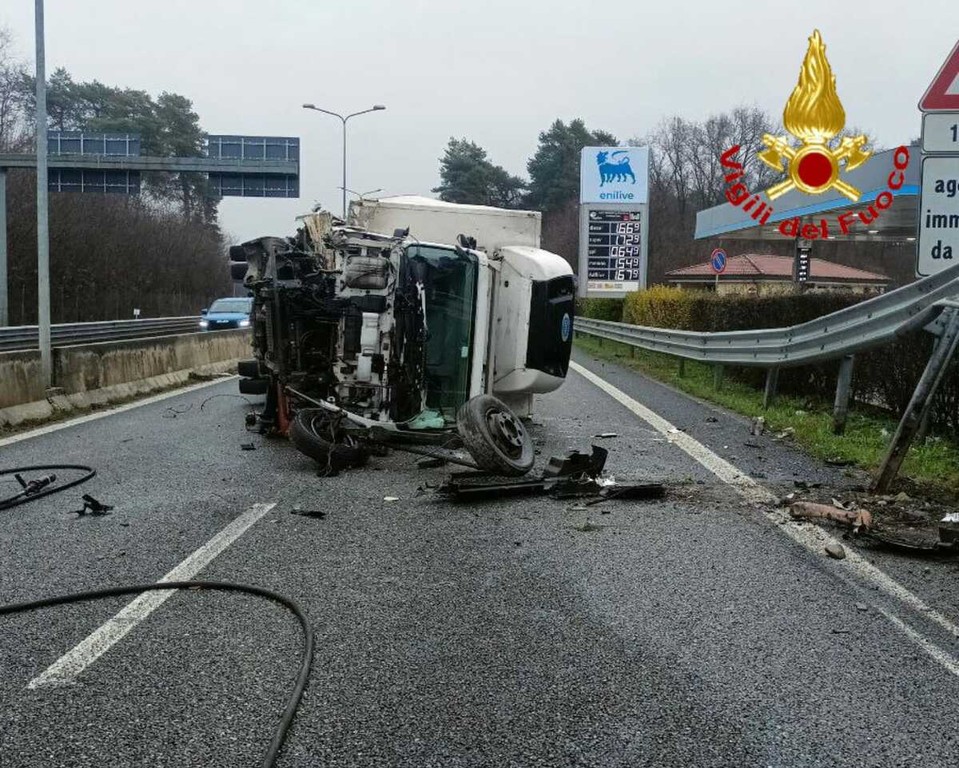 Un camion per motivi ancora in corso di accertamento, si è ribaltato nel primo pomeriggio di oggi attorno alle 14 lungo la superstrada di Malpensa, a Cardano Al Campo nei pressi di un'area di servizio.