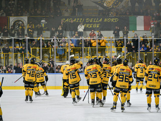 Intanto il Varese fa ciò che deve, soffrendo e colpendo, senza dare nemmeno l'impressione di dannarsi del tutto l'anima: bellissimo e pesante l'1-1 di Ghiglione sotto la traversa da vice killer (il killer per eccellenza sappiamo chi è) che fa esplodere via Albani appena 36 secondi dopo il vantaggio ospite nel primo tempo, prima del rimbalzo vincente del 2-1 di Marcello Borghi. Secondo tempo di sofferenza con il 2-2 in aggiramento di Majul, finché Bastille parte e va a mettere il nuovo vantaggio a modo suo (3-2). Una saetta di Makinen all'incrocio in power play (l'assist è di Bastille) e, poi, il siluro di Terzago - sempre ispirato da Makinen - chiudono i conti (5-2): concretezza, per una volta cinismo, voglia di vincere. Tanto basta. Mvp? Pubblico, gruppo e, per noi, Pippo Matonti, baluardo nei momenti difficili, Alex Bertin, baluardo da inizio campionato, ma anche William Makinen, baluardo delle ultime gare che, schierato stasera da Da Rin proprio con Bertin, ha formato una supercoppia. E sappiamo come tutte le cose belle nascano sempre là dietro.