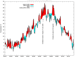 nel mese di giugno con 13 giornate consecutive con massime oltre 30°C e massima assoluta di 35.7°C. Nelle sole due giornate 30 giugno e 1